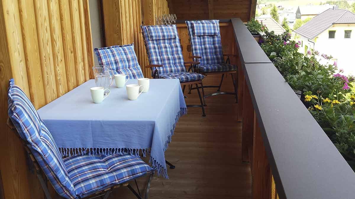 Süd-Balkon mit Tisch und Stühlen